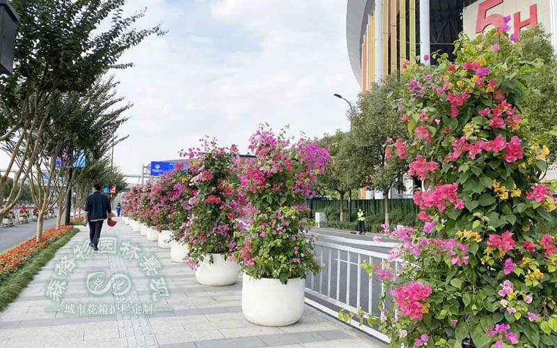 城市道路上有很多風格的花箱組合。看似復雜,但可以分為花箱與花箱的組合,花箱與護欄的組合。這兩種花箱組合是目前市政管理中使用的兩種主要樣式。