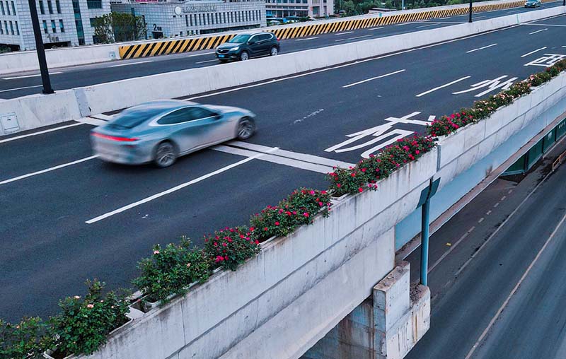 余杭運溪高架路初綻放!獨有的浪漫‘高架花箱’已上線