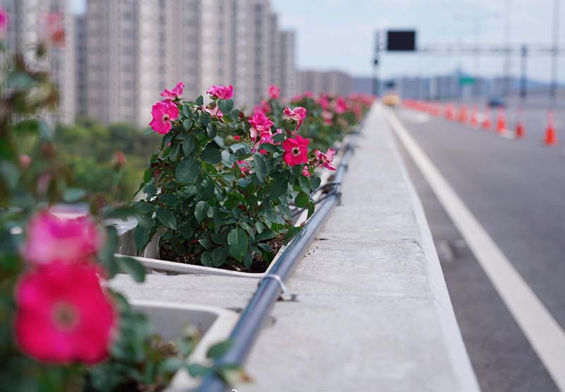 相比老品種,新品月季具備花色艷麗、殘花不需修剪、抗病性強、不需防病打藥、夏季不休眠持續開花等具有多項優點,能夠在保證美感的同時,降低養護難度,拉長開花時間,大大增強城市道路“高顏值”的持續時間。優質的新品種將確保把運溪高架裝點成杭城“空中花廊”。